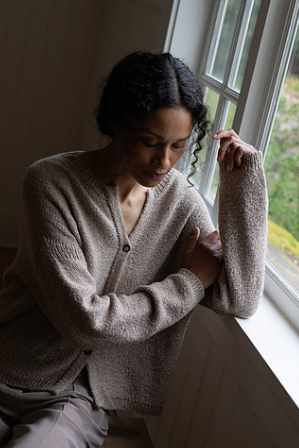 Детали вяжутся плоским полотном снизу вверх, а затем сшиваются. Петли для воротника-стойки набираются вдоль края выреза и вяжутся по кругу.